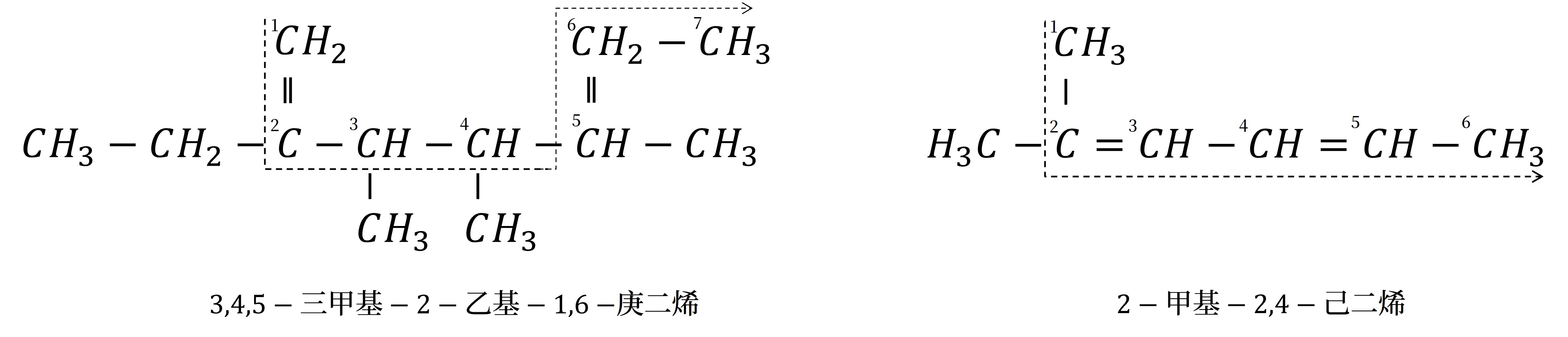 - 主链的选取:必须是含有碳碳双键或碳碳三键的最长碳链