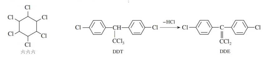 有机氯农药:DDT 转变为 DDE 后毒性降低昆虫表现出抗药性。